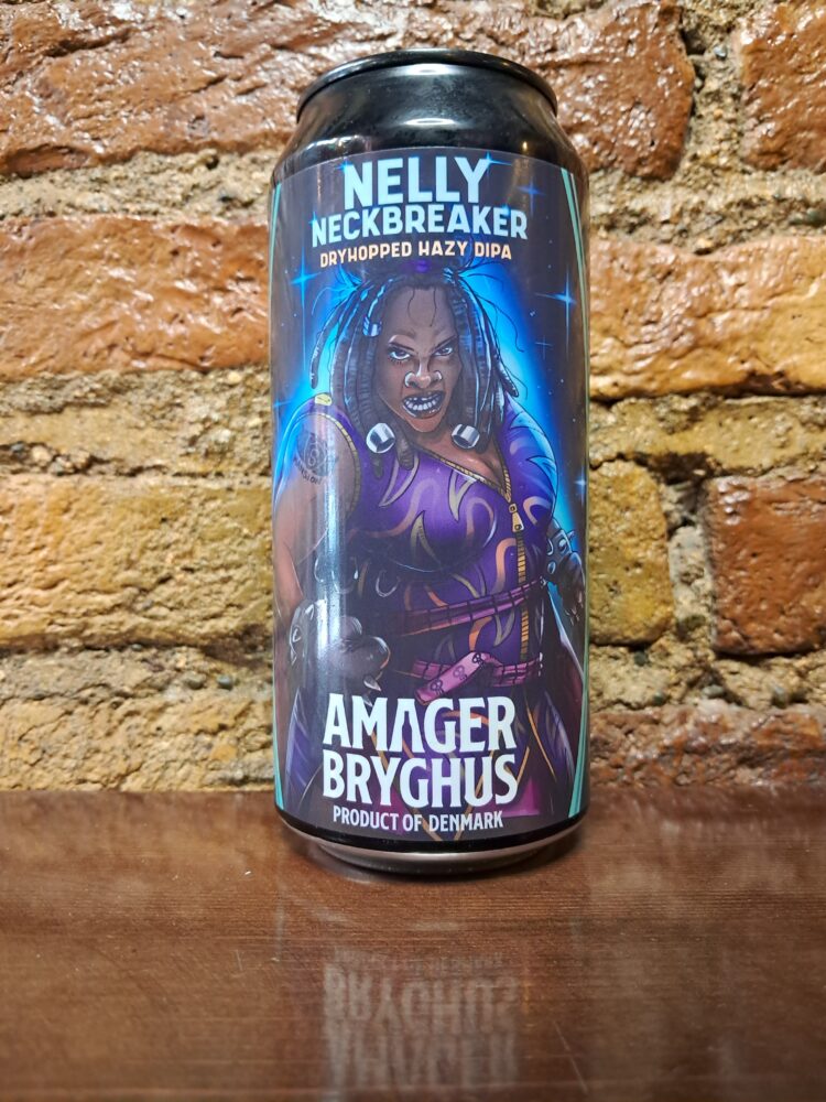 “Nelly Neckbreaker by Amager Bryghus is a Dry-Hopped Hazy Double IPA with a juicy, hazy profile. a soft mouthfeel and intense hop character.”