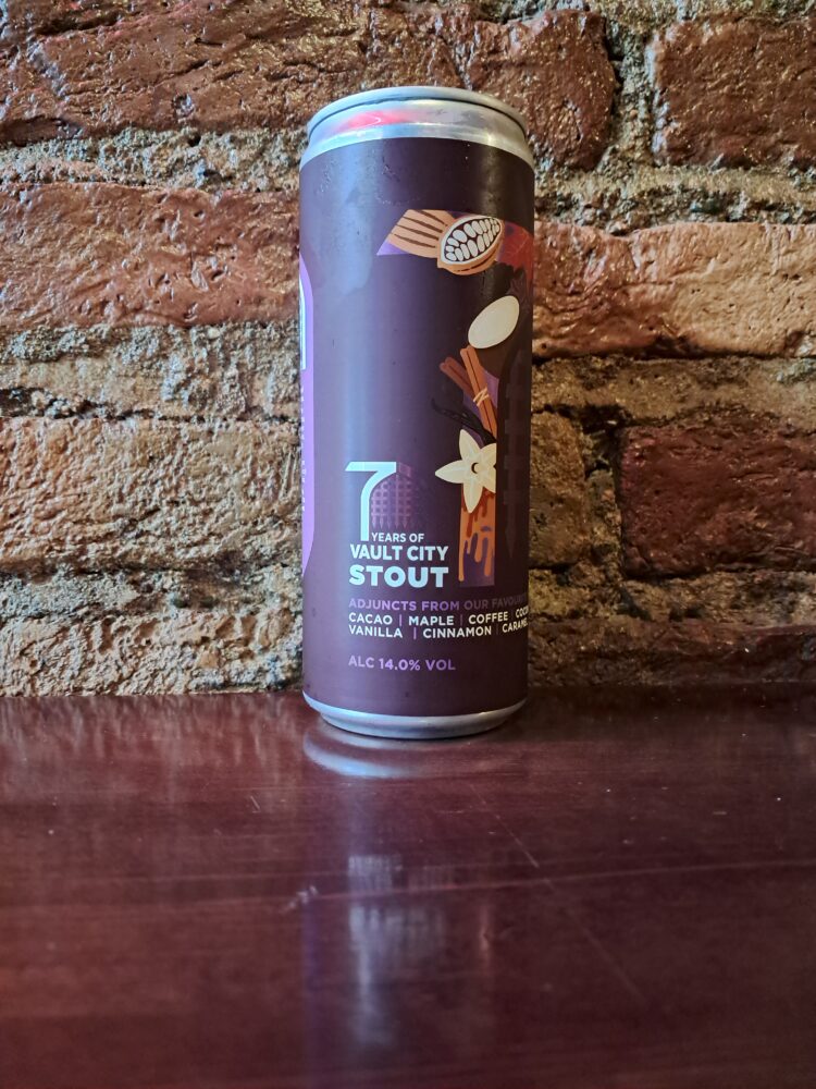 “Seven years, seven of our favourite adjuncts. Brewed to mark Vault City’s 7th birthday, this decadent imperial stout layers chocolate cacao nibs, maple syrup, coffee, coconut, vanilla, cinnamon, and caramel into something luxuriously smooth and full-bodied. It’s dark, rich, sticky, and the perfect way to celebrate seven sweet years, with many more to come.”
